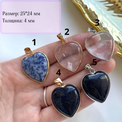 Подвеска «Сердце» с натуральным камнем, родирование