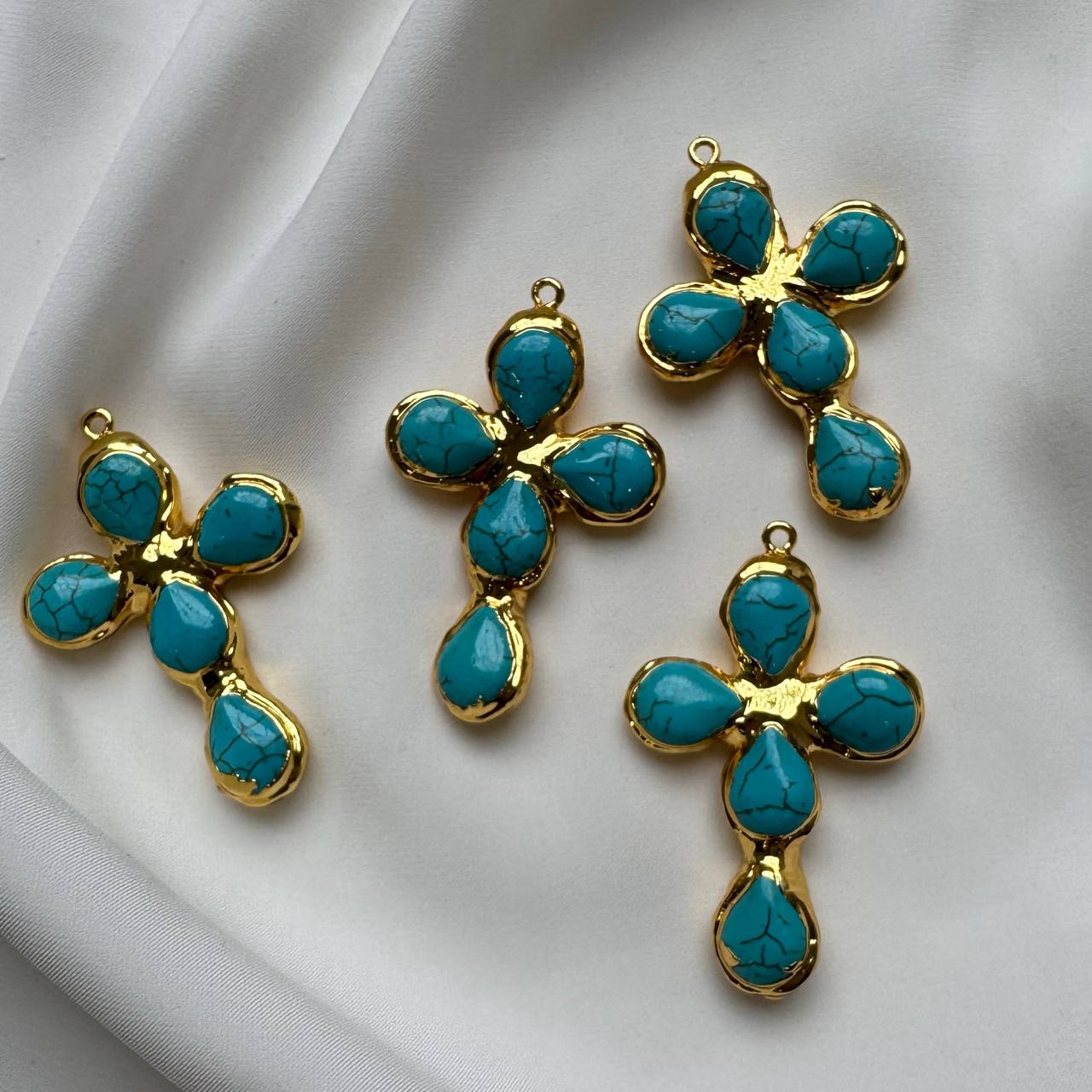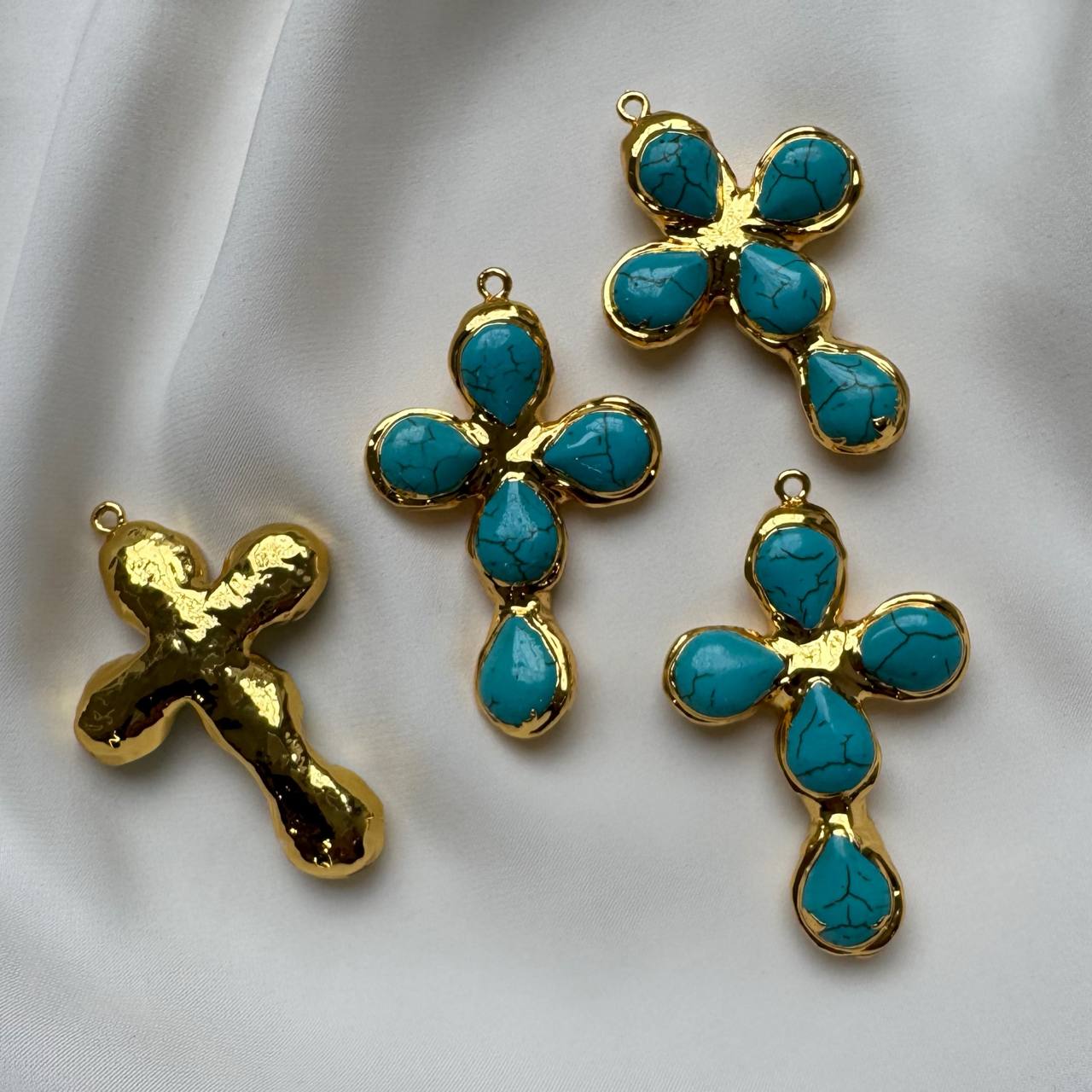Подвеска "Крест" с натуральным говлитом, 53*35 мм