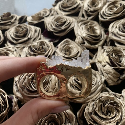 Кольцо двойное с друзой кварца, в позолоте 24К Размер 16,5/15,5 Бразилия