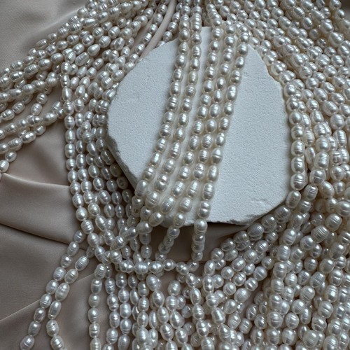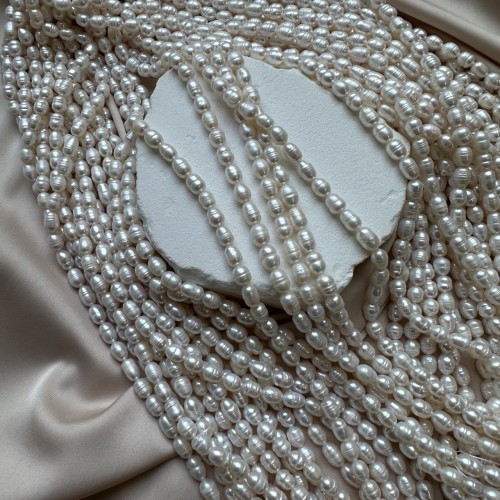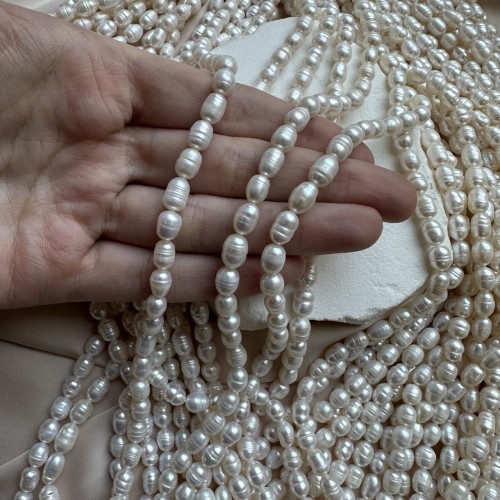 Жемчуг культивированный (натуральный) "Бочонок" 6*7 мм, нить
