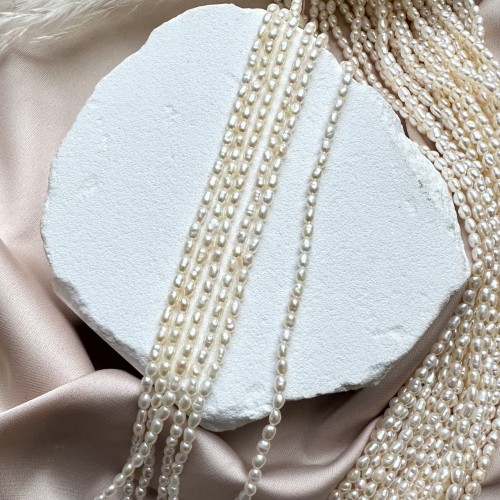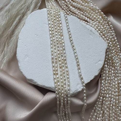 Жемчуг культивированный (натуральный) "Рис", 2,5*3 мм, AAA, нить