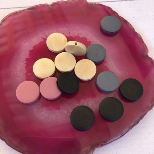 Бусина из натурального дерева, Квадрат/Круг, комбинированная пластиком. 15мм
