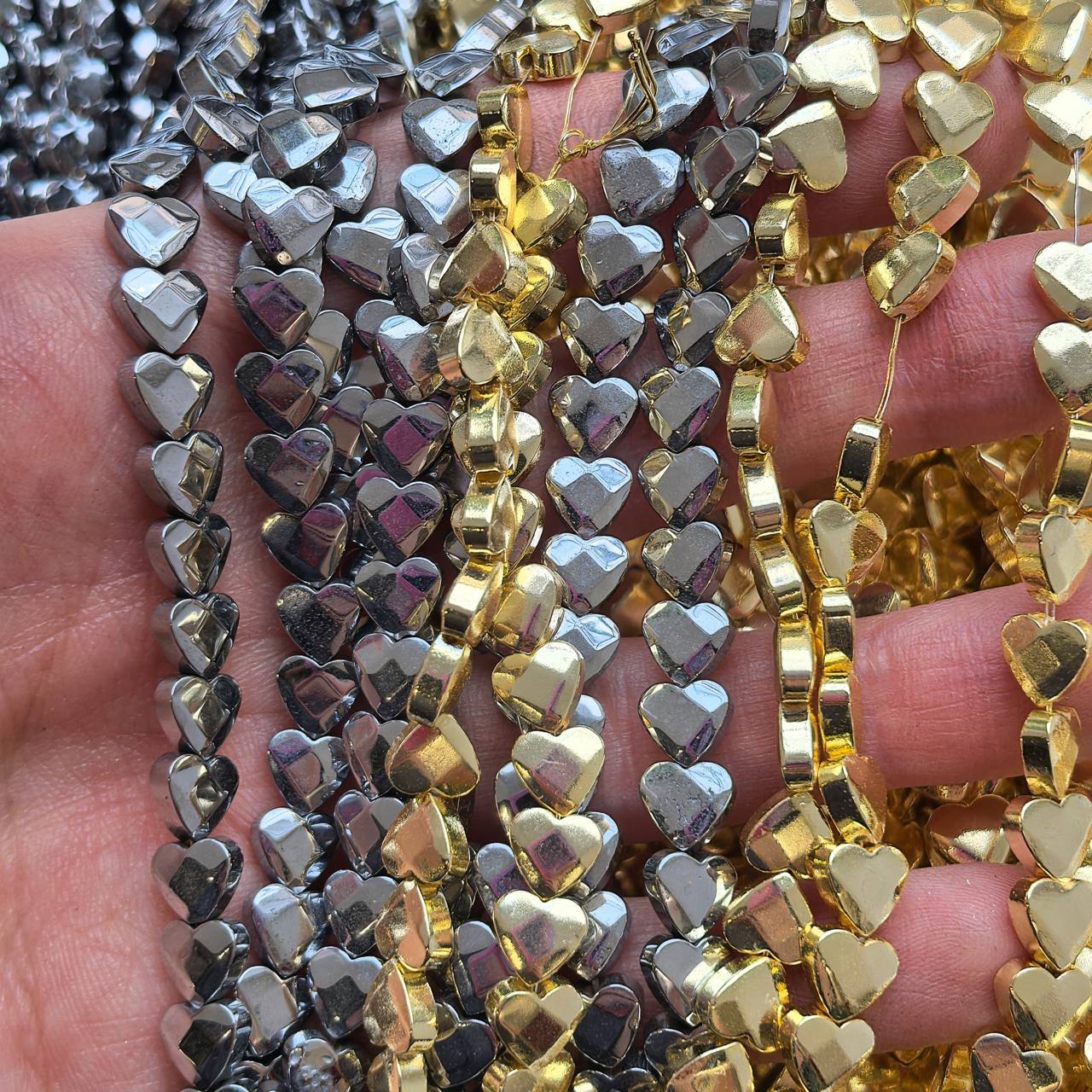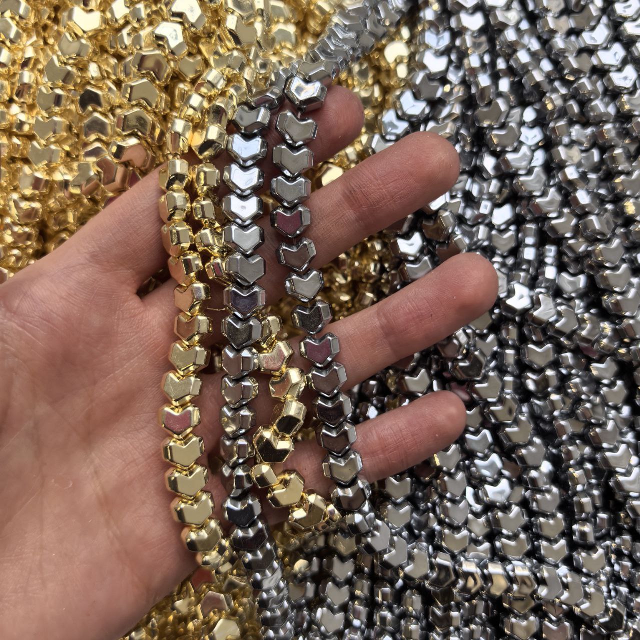 Гематит граненый "Сердце", 6 мм, нить