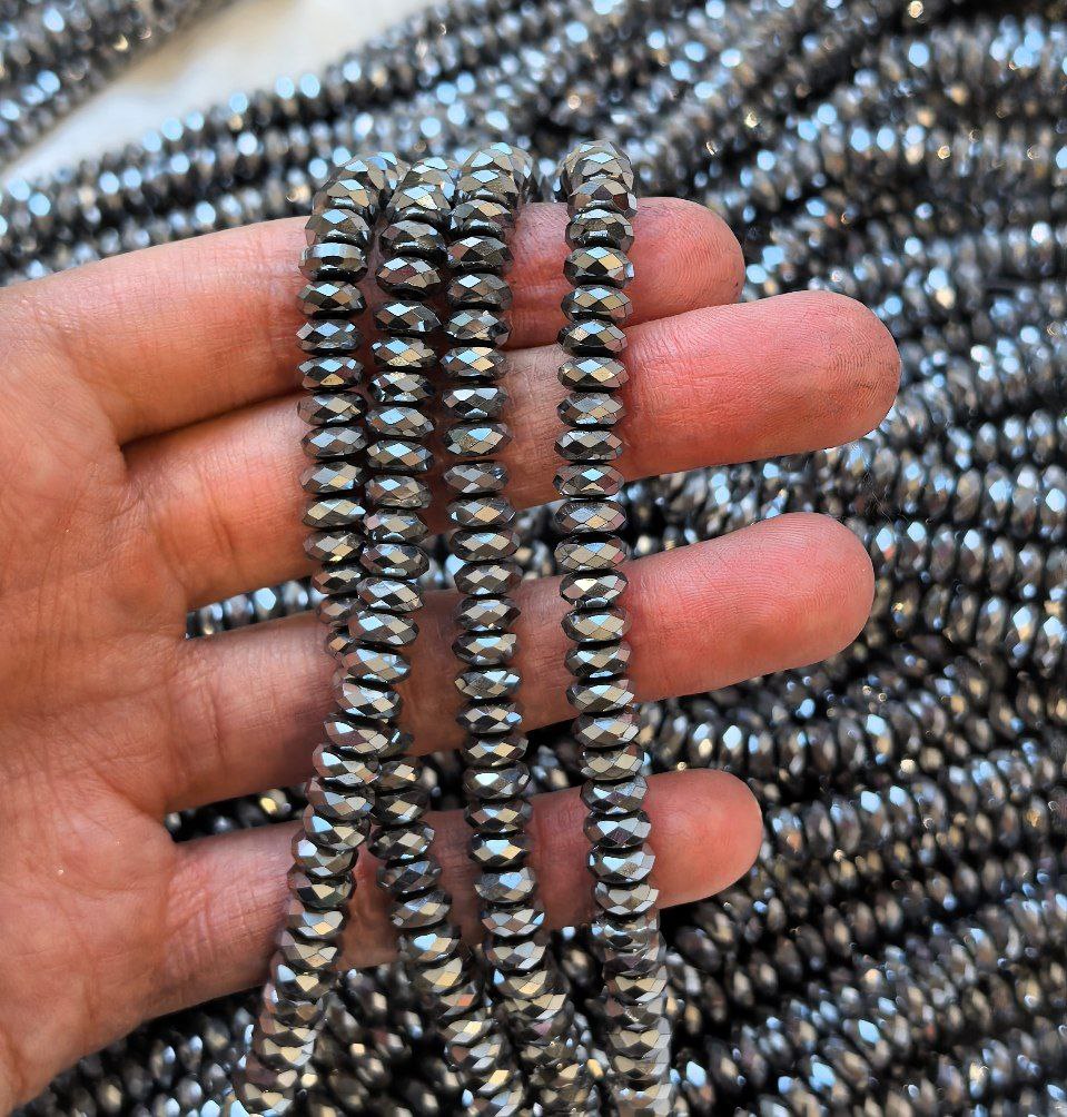 Гематит граненый "Рондель", 3*2 мм, нить