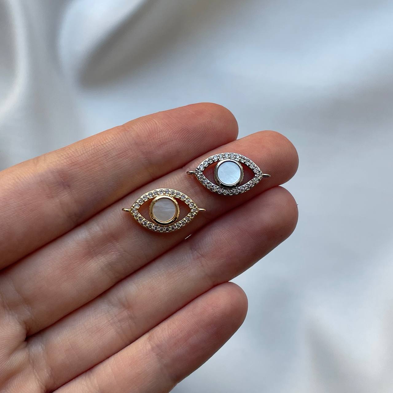 Коннектор "Глаз" с перламутром и циркониями, 10*19 мм