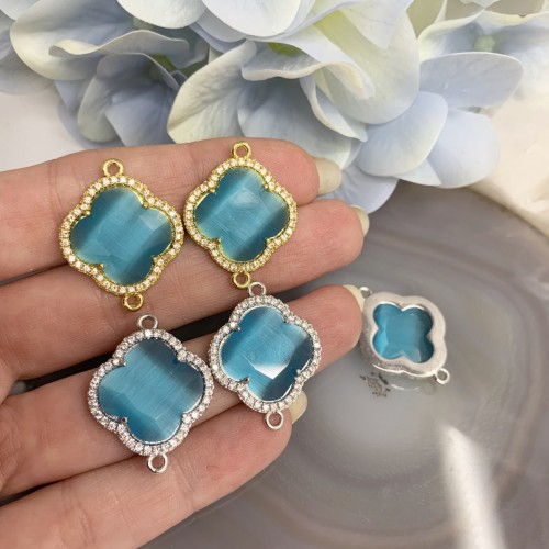 Коннектор Ювелирный, в стиле Van Cleef, Родирование/Розовая Позолота 24К, Цвет Голубой