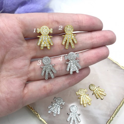 Коннектор "Детки", инкрустация цирконием, родирование/позолота 24К 19*13мм