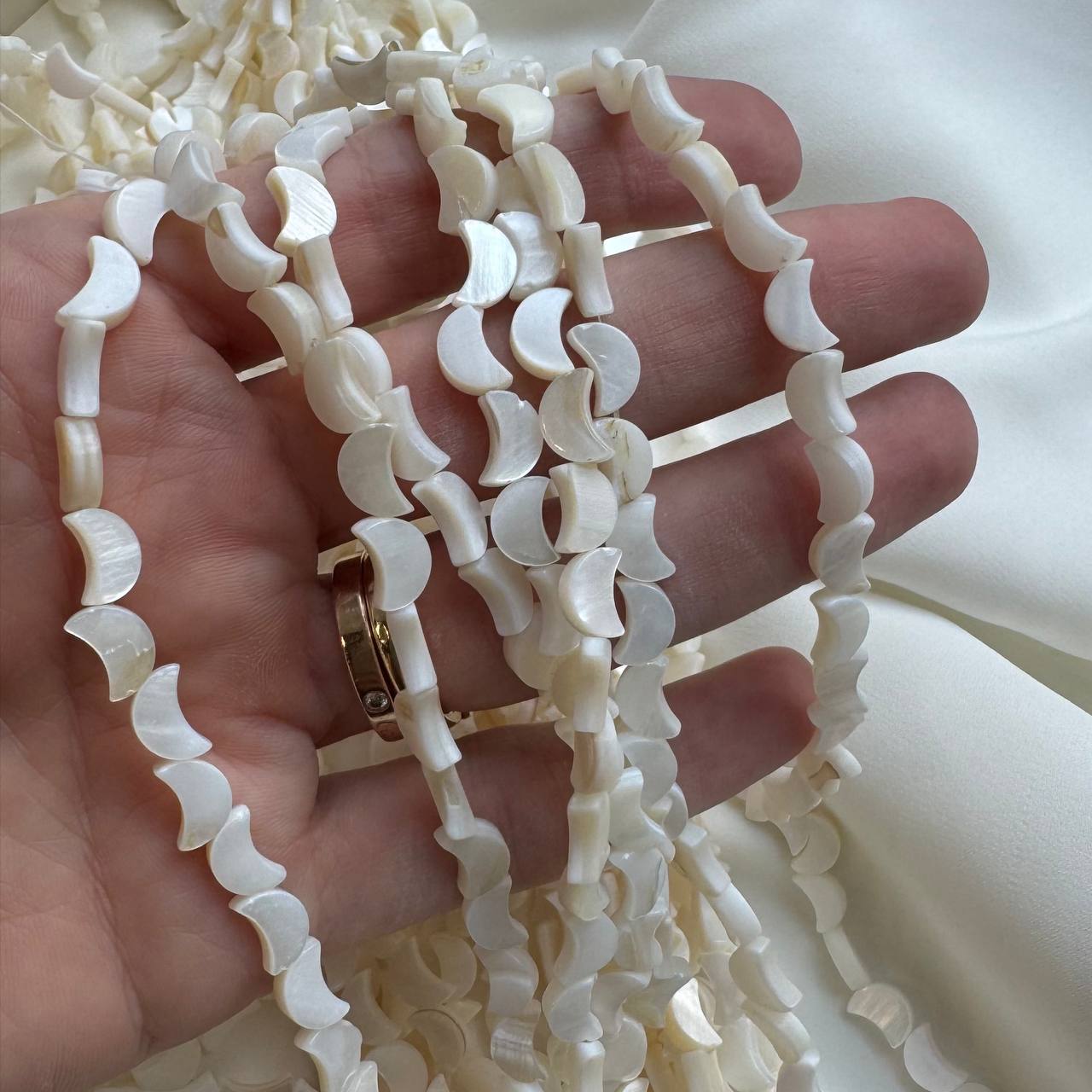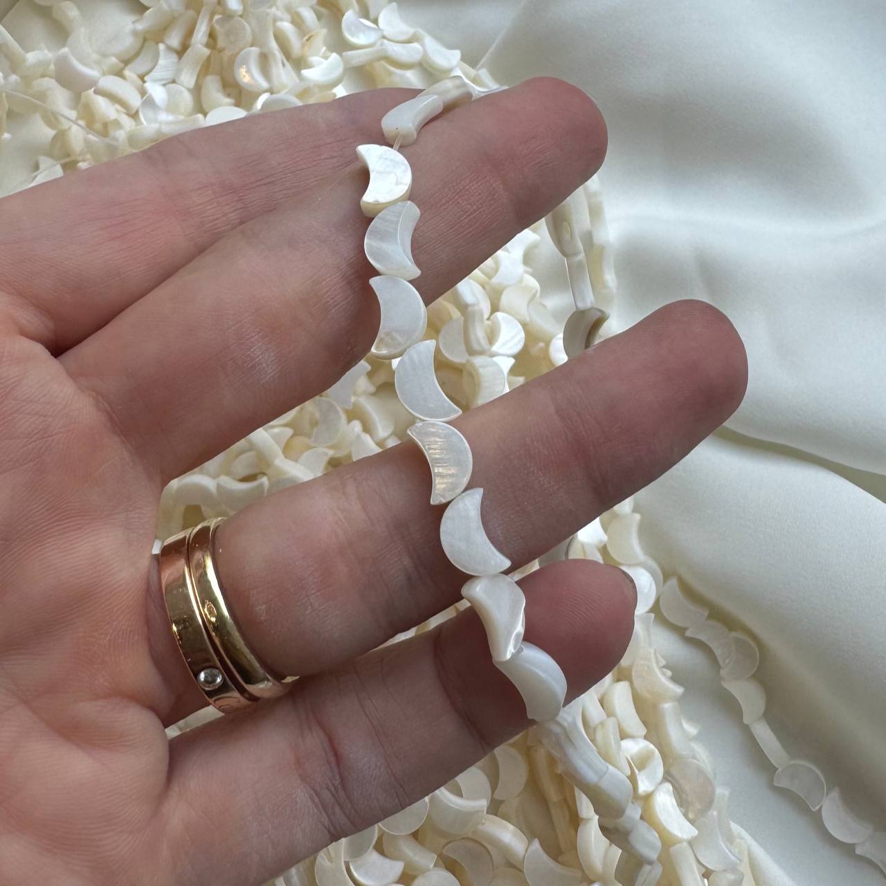 Бусина "Луна", перламутр, 8*4.5 мм, штука