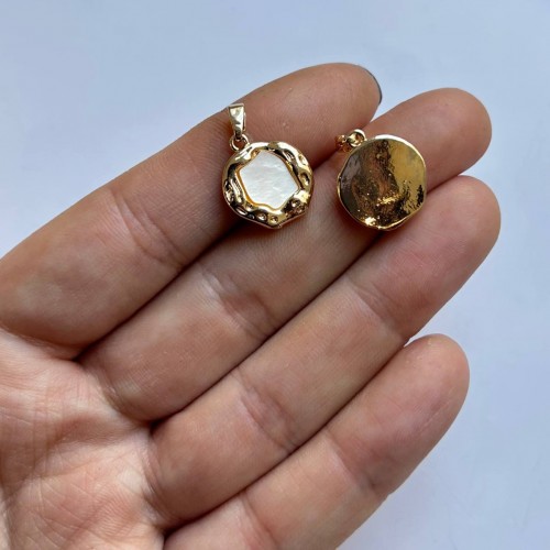 Подвеска "Мятый круг" с перламутром, 14 мм