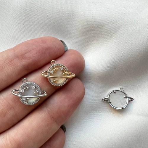 Подвеска «Сатурн» с перламутром и цирконами, 16*10 мм