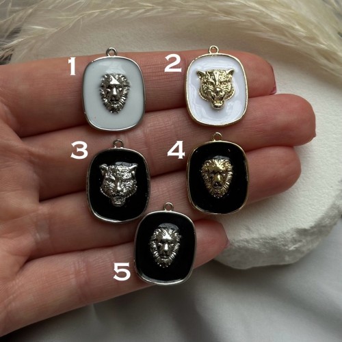 Подвеска "Лев"и "Тигр", белая/черная эмаль, позолота/родирование