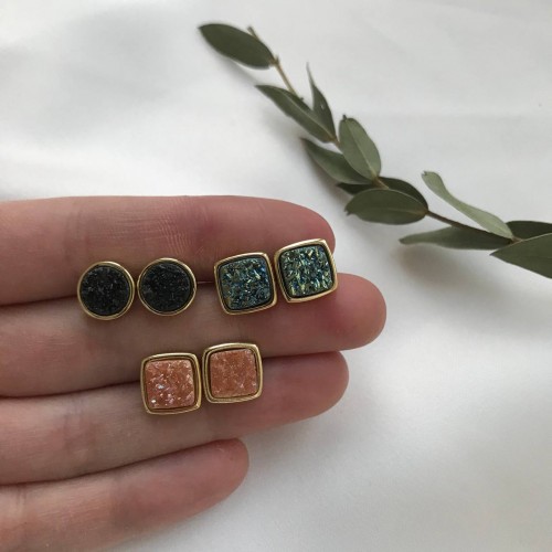 Пусеты с друзой кварца, позолота 24К.
