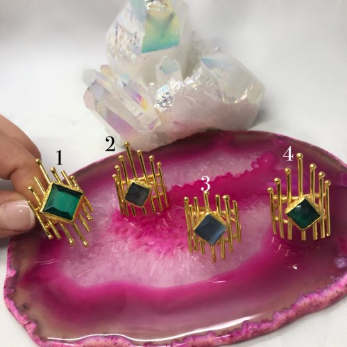 Кольцо с цветными циркониями, позолота 24К