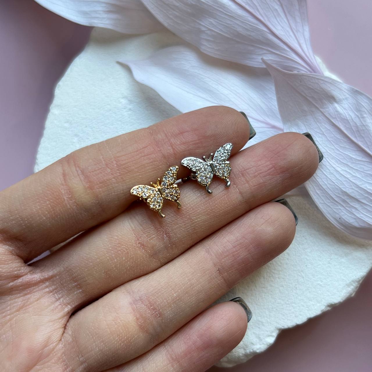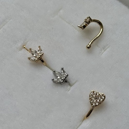 Кафф "Бабочка" с циркониями, 13*10 мм, на левое ухо