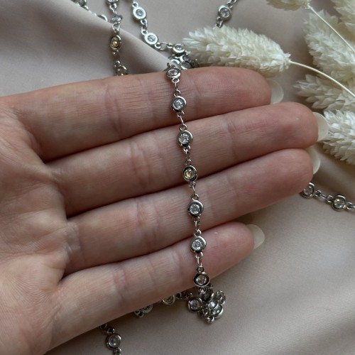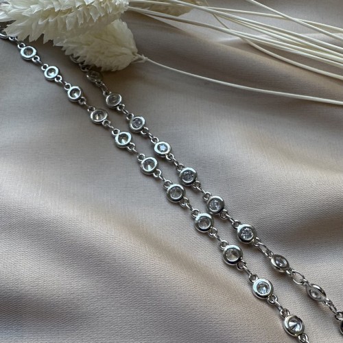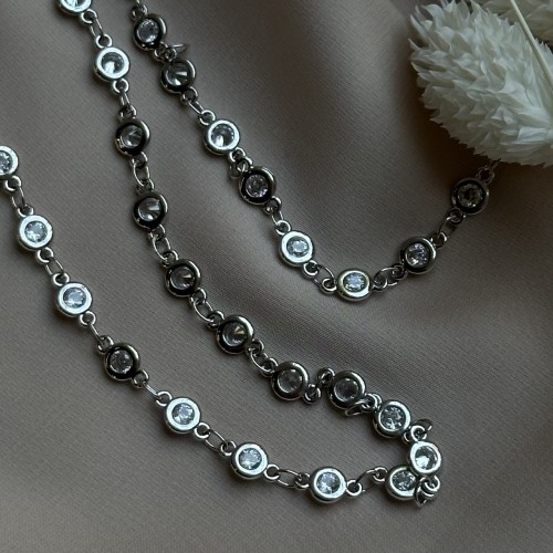 Цепь с циркониями, 8*5 мм, родирование, 10 см
