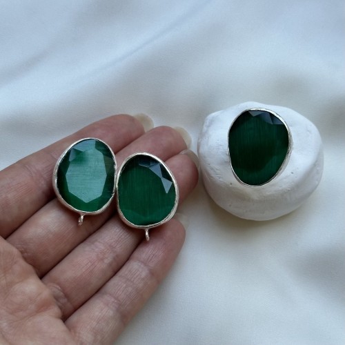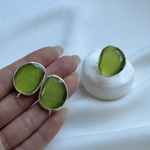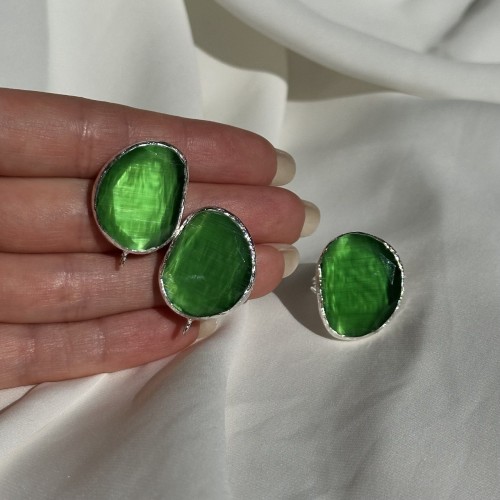 Швензы/кольцо с ювелирным стеклом "Травяной", посеребрение