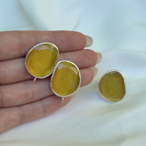Швензы/кольцо с ювелирным стеклом "Желтый", посеребрение