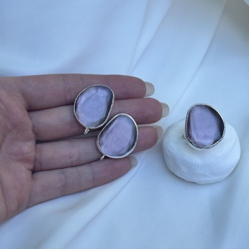 Швензы "Овал граненый" из перламутра, серые