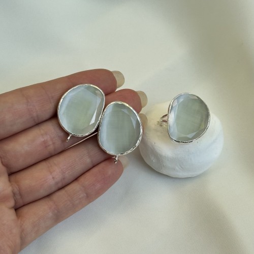 Швензы/кольцо с ювелирным стеклом "Слоновая кость", посеребрение