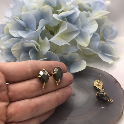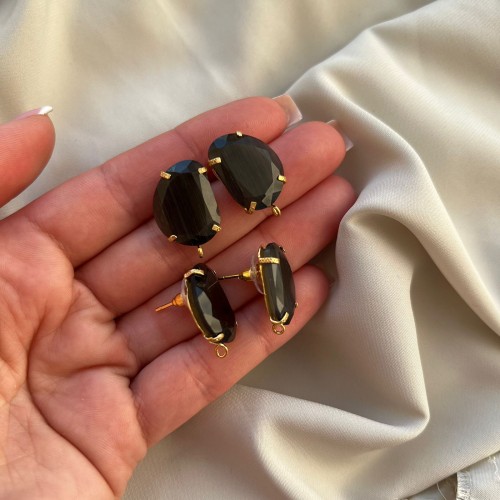 Швензы "Черный агат", Позолота 24К