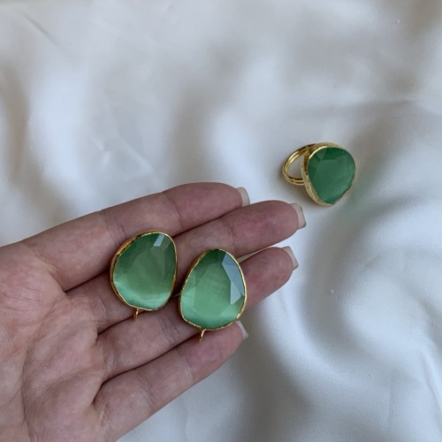 Швензы/кольцо с ювелирным стеклом "Киви", позолота