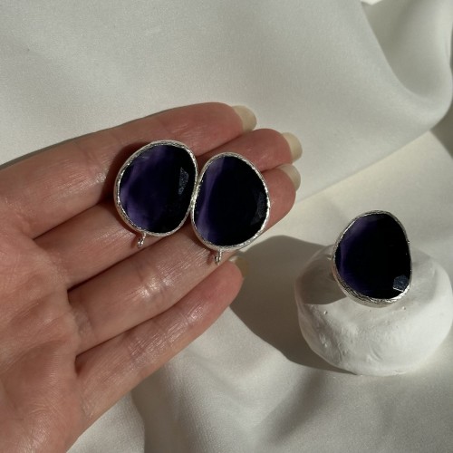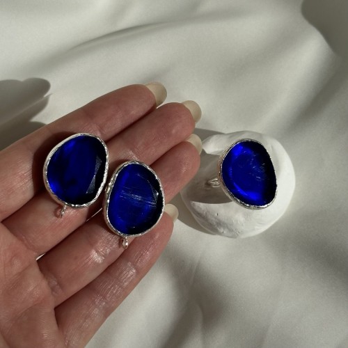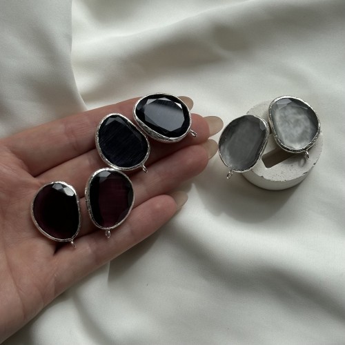 Швензы с ювелирным стеклом "Темные оттенки", посеребрение