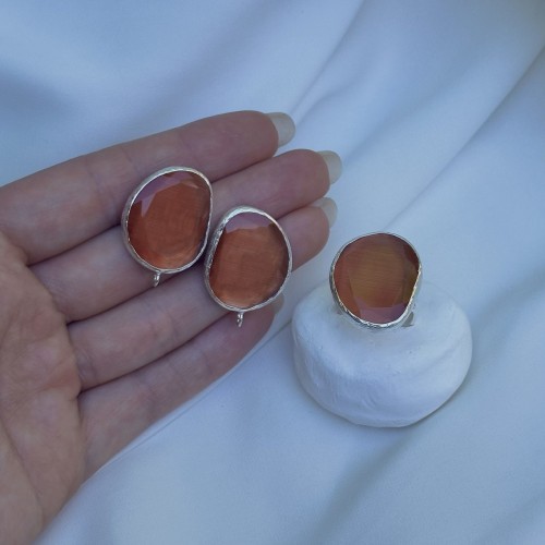 Швензы/кольцо с ювелирным стеклом "Коралловый", посеребрение