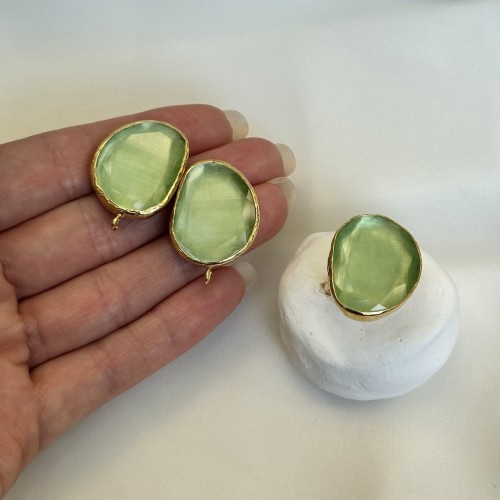 Швензы/кольцо с ювелирным стеклом "Лайм", позолота