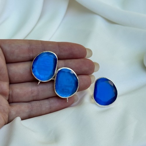 Швензы/кольцо с ювелирным стеклом "Синий", посеребрение