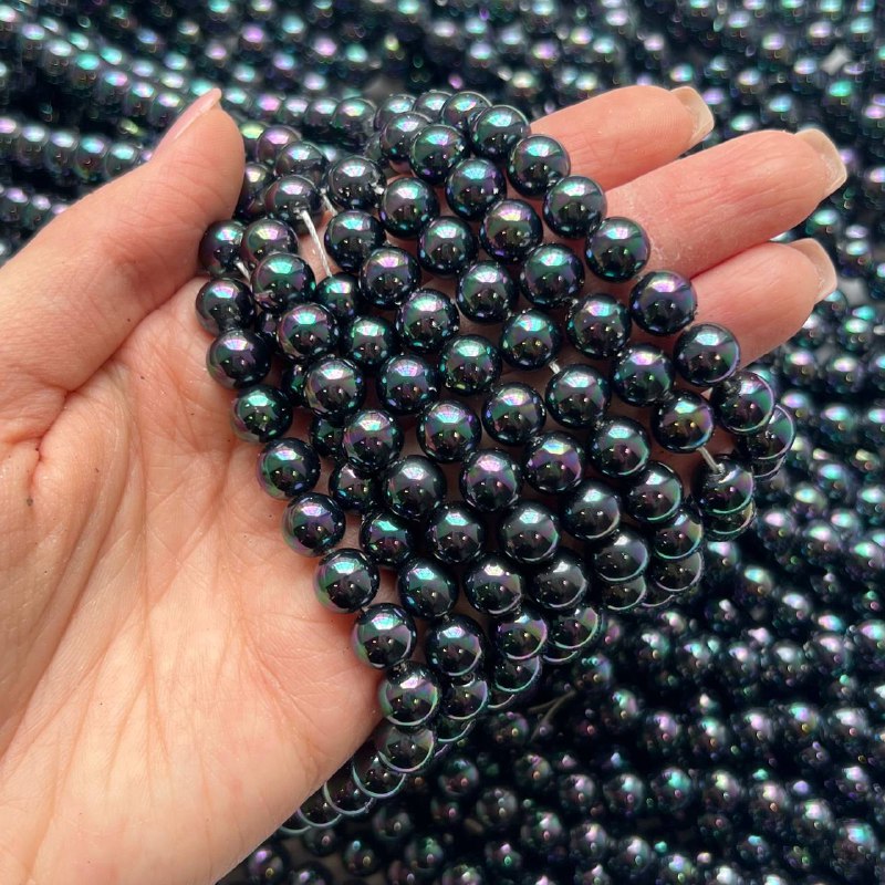 Жемчуг Майорка "Черный бензиновый", 8 мм, нить