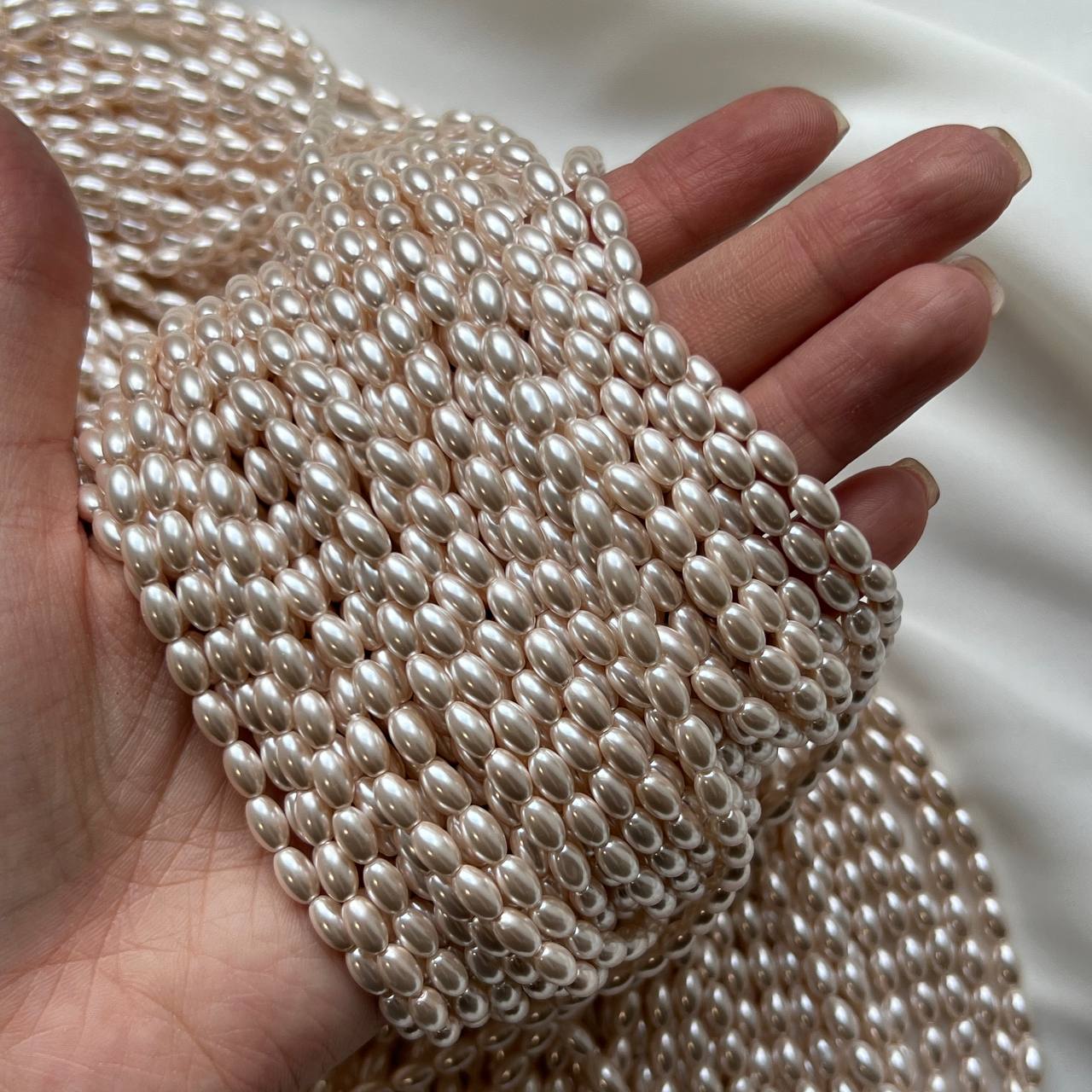 Жемчуг Майорка "Рис",7*4 мм, нить